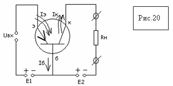 1.2 Uвх≈Е1, Uвых≈Е2, при Е2>>E1, следовательно Uвых>>Uвх. Схема с ОБ заметно усиливает напряжение до 100 раз;