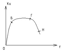 ОБ показывает, что чем меньше частота (f), тем меньше коэффициент усиления (Ku) –это завал низких частот.