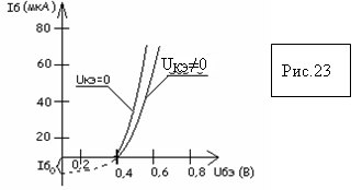 При Uкэ≠0 в цепи базы проходит дополнительный ток IБ0 за счет Е2, направленный против основного тока базы и уменьшающий его. Поэтому характеристика смещена в право.