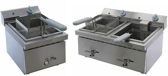 Предназначена для приготовления различных видов продуктов в разогретом жире (фритюре). Состоит из блока управления, фритюрной ванны, технологического садка и крышки. Блок управления включает терморегулятор и трубчатый электронагреватель (ТЭН) итальянского производства, отличающийся надежностью в работе и длительным сроком эксплуатации. Терморегулятор способен поддерживать температуру фритюра в диапазоне от 35 до 200°C. Фритюрная ванна состоит из корпуса и самой ванны. Технологический садок выполнен из нержавеющей стали и имеет удобную ручку с "холодной" пластиковой вставкой, которая предотвращает выскальзывание садка из рук. Съемный блок управления дает возможность легко производить санитарно-гигиеническую очистку фритюрной ванны. Выпускается в двух модификациях: с одним и двумя садками.