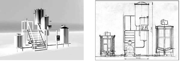 2. Установка УВВ. Однокорпусный аппарат из нерж. стали. Состоит из сепаратора - пароотделителя, нагревательной камеры, конденсатора.
